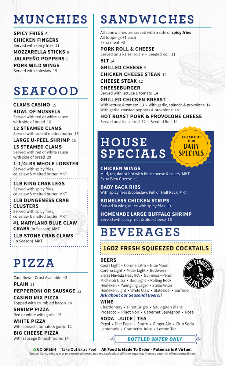 Guests often enjoy comforting bar favorites like hearty ribs, flavorful chicken wings served with bleu cheese and celery, and generous plates of seafood including clams casino and crab legs. Whether stopping by for a casual lunch, an easy dinner, or drinks with friends, the menu’s range accommodates informal social moments and classic shore dining experiences.
